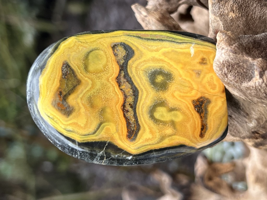 A gorgeous bumblebee freestanding weighing 143g and measuring 69:52:20mm the intensity of the yellow and mix of grey and golden shades show just how clever nature is at making beautiful stones. This is the one you will receive. Healing Stone for the Sacral and Solar Plexus Chakra Intensity : Creativity : Inspiration Bumblebee Jasper is an excellent companion for the journey of life. It strongly stimulates the sacral and solar plexus chakras, freeing any blocked energies in these areas so that one may fully manifest the things they feel a calling to do. The energy flow here brings high levels of inspiration and intensity into one’s creative energy. This will inspire one to pursue new projects and increase one’s power of persistence to not give up despite any obstacles that may interfere. This is especially effective when one is pursuing something deeply meaningful to them. These metaphysical properties of Eclipse stones are known to assist you by enhancing your creativity and may be advantageous if used in combination with other stones that boost creativity. These stones resonate within the solar plexus chakra and may help to ease stress and worry related to others opinions of you. They are also said to help to stimulate mental clarity. They have a number of excellent healing attributes, including helping those who have allergies, as well as aiding healing of the organs governed by the sacral or navel chakra.