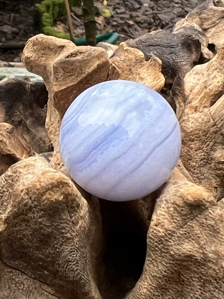 Blue Lace Agate crystal ball weighing 20g and measuring 26mm diameter. Lovely beautiful delicate patterning to this calming blue lace agate ball. Blue lace agate is one the prettiest stones you will ever see. With its delicate bands and patterns that look like waves and arrangements that look like lace, this stone can truly captivate. Blue lace agate is also known as Blue Chalcedony Lace, Blue Lace, or the Gem of Ecology. Its name relates to the beautiful lacy bands of grey, white, and blue lines that run through the light blue stone. It’s among the rarest and most popular agate stones because of its appearance and the many healing benefits it gives to its owner. Blue lace agate is commonly found in Namibia, as well as other parts of the world like the USA, Brazil, India, and China. Why Would You Use Blue Lace Agate? This is a stone that not only looks beautiful but also holds a subtle but powerful energy. It’s a stunning gemstone that can bring you to a higher state of consciousness! It’s an excellent tool in meditation. It’s calming and uplifting, and it’s illuminating as much as it is empowering. It will endow you with a strong sense of peace and serenity. It will help you express your thought and feelings in the most beautiful and effective way possible, and it will neutralize any angry and negative emotion that you’re feeling. Blue lace agate can help you with your communication issues, both in your personal and professional life. You will find your voice to speak out what you think or feel, and you will feel confident and courageous doing it.