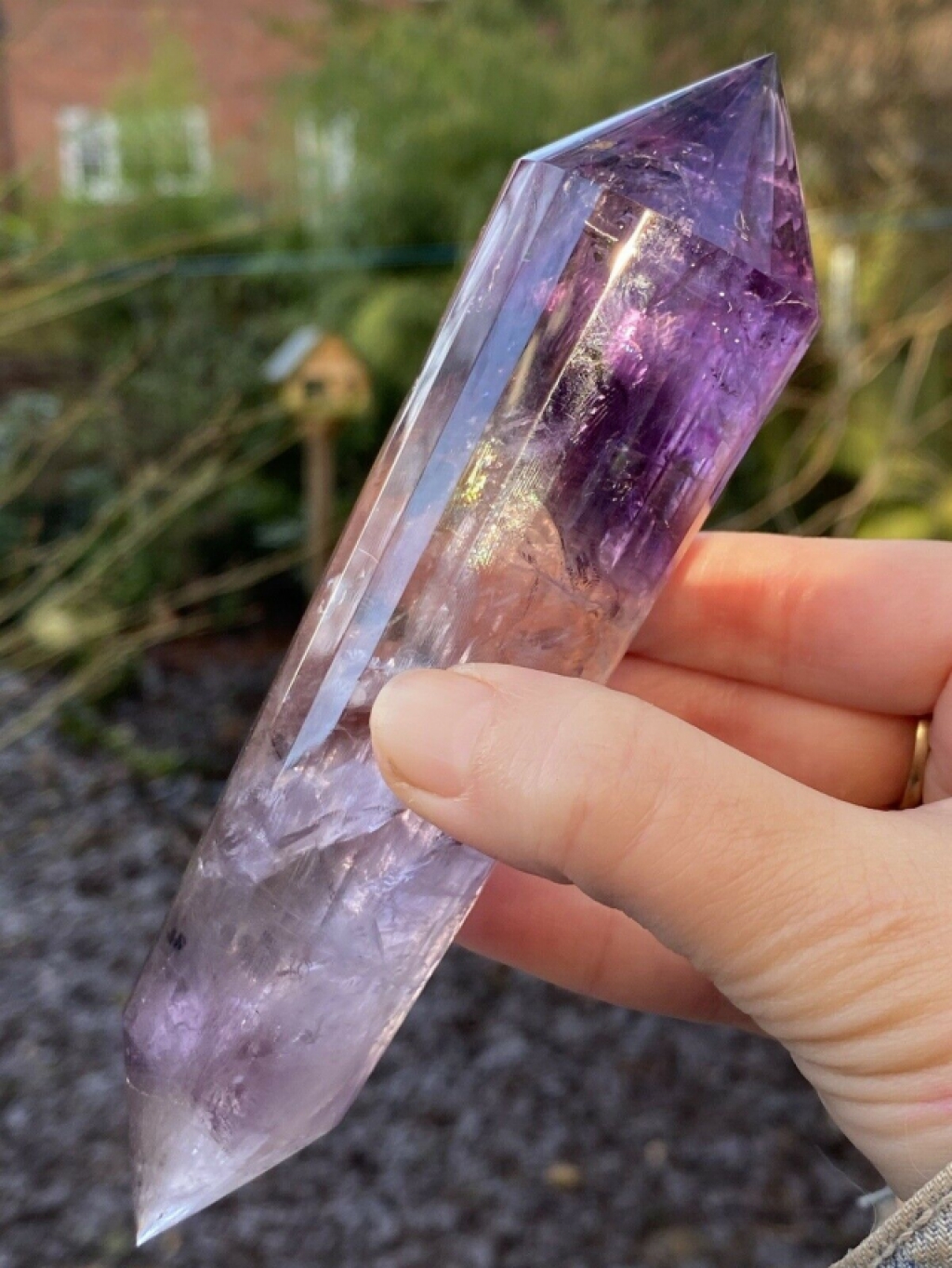 Beautiful amethyst 24 sided Vogel wand weighing 266g and measuring 150:38:38mm. Rainbow and lovely shadows inside.