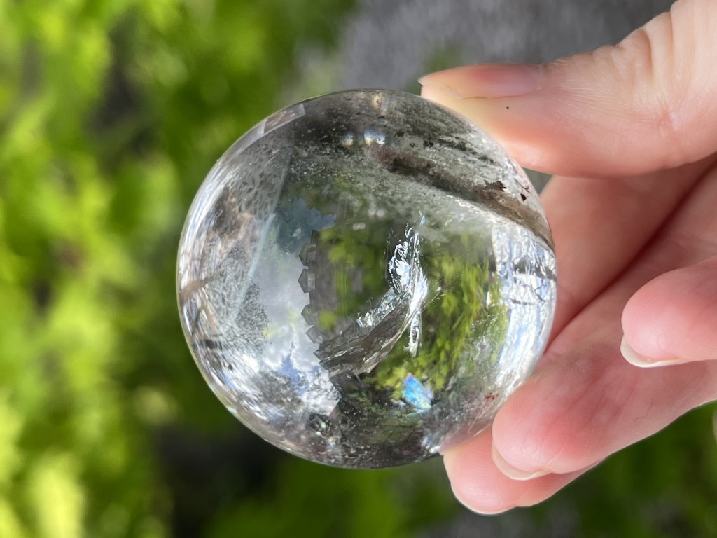 Clear Quartz Lodolite Scenic Crystal Ball weighing 117g With Phantoms 44mm diameter. Stunning garden Lodolite scenic clear quartz crystal ball. PHANTOM QUARTZ PUSH THE LIMITS GROWTH • TRANSFORMATION • EVOLUTION A majestic and mysterious variation of Clear Quartz, a big-time energy cleanser, Phantom Quartz gets its powerful healing vibes from rare and unique formations created from interruptions in their growth. The blockages help create concentrated mineral deposits, which form in distinctive ghost-like shapes within the crystal. These dreamy phantoms all have their own story, bringing messages of wisdom and truth that the Phantom Quartz crystal meaning has gained over the millennia. PHANTOM QUARTZ MEANING & HEALING PROPERTIES In crystal healing, the Phantom Quartz meaning harnesses the healing vibrations found deep within the earth, giving it profound powers of insight and spiritual inspiration. If the Phantom Quartz crystal has captivated you with its alluring vibes and dramatic aesthetic, it could be a sign that you need help getting out of a rut in your life. When you meditate with the Phantom Quartz meaning, it works like a natural antidepressant but without any side effects. Everyone’s meditation practice is different, just as there is no right or wrong crystal to use. Any kind of energy work relies on your natural powers of intuition, so you can rest assured that you’ll always pick the right crystal you need in your life at that particular moment. In other words, the crystal picks you and not the other way around.