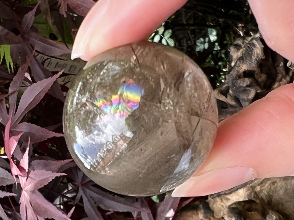 Large Lodolite Smoky Quartz Crystal Ball AAA+ 26g 28mm Rainbow Rutile