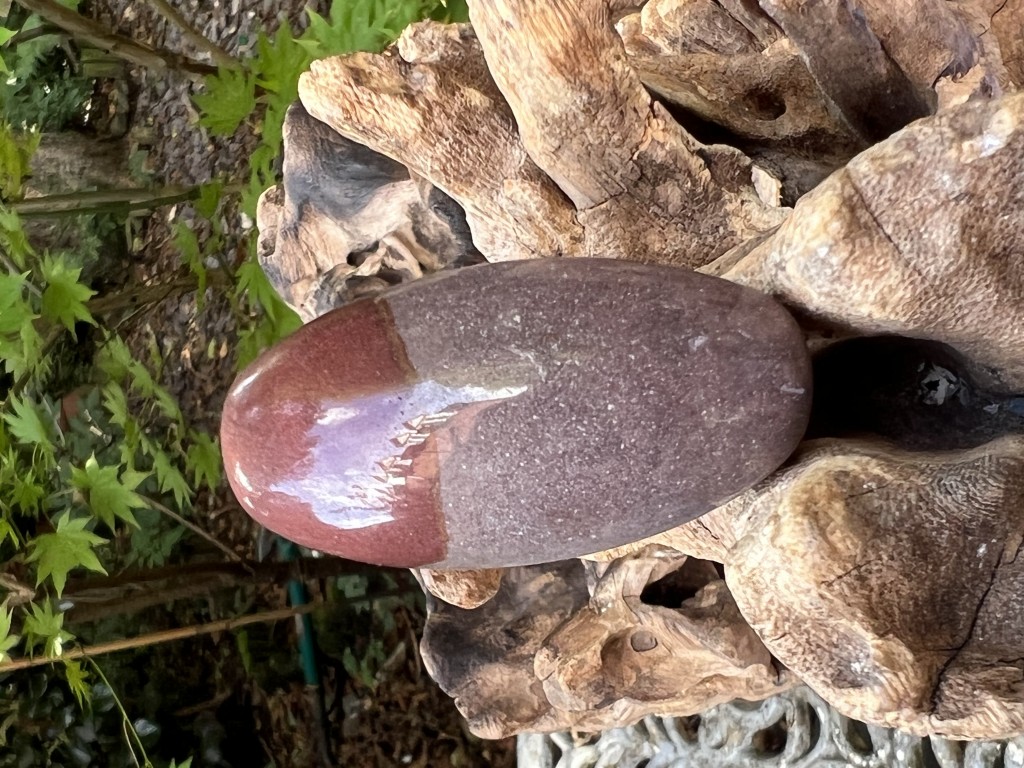 Large Shiva Lingam Holy Mountain Stone India weighing 61g & measuring 53:27:27mm. Shiva Lingam is a tough crypto-crystalline Quartz with impurities that give it a very unique appearance. This stone has iron oxide deposits within it, said to come from a meteor that crashed into the river millions of years ago. It contains a mixture of Agate, Basalt, and Jasper. The color of this stone is primarily grey or pale brown with brown-red patches, stripes, or rings throughout. No two Shiva Lingam stones are alike, each one is unique. The most defining characteristic of Shiva Lingam is its smooth egg shape which is formed from natural tumbling within the Narmada River, where it is gathered and hand polished by villagers. The Narmada River is one of the seven holy sites of India, and one of the five holy rivers, located in Onkar Mandhata (in western India). Shiva Lingams represent the beginning of all creation and are physical manifestations of divine male and female energies. They embody the masculine energies through their solid oval shapes and the feminine through their many unique patterns. It is through this formation that they are able to link to the force of creation, just as humans can physically birth new life through connection of the male and female bodies. Shiva Lingam aids in understanding polaric energies such as male/female, light/dark, and spiritual/physical so that one may see the one unifying force of God that exists behind them. This helps one to heal and bring each polarity together within the self so they may work in harmony, bringing one to a state of self acceptance as well as acceptance of the differences in others and in all of creation. The deep connection that Shiva Lingams have to creation give them a powerful resonation with all elements. They carry with them a strong connection to the earth element, so strong that it provides a deep link with the Earth itself for a pure connection and understanding of the planet we call home. Water itself is able to change shape and the Lingams have been shaped by the water. This is an intimate bond that is held within the stone, allowing one develop emotional and spiritual knowledge of great depth. It provides the cleansing effects of water and has a gentle cooling effect on the body. One may notice an influx of intuitive insights as well when working with a Shiva Lingam. Although it can easily cool the body, this stone is able to pick up and store heat very quickly. It contains immense fire energy within it which can be felt as it energizes the entire body and auric field. The fire energy in this stone is so intense that it can immediately activate Kundalini energy and ignite the soul. When meditating with Shiva Lingam one can feel this intense energy moving from the base of the spine all the way to the top, moving the sacred energy within through the chakra column and activating every chakra along the way. This also provides an incredible boost to vitality and prana. Prana is the breath of life - originally coming from God source to the human body at birth. We breathe this breath every day of life and through breathing we can work closely with the element of wind. When meditating with Shiva Lingam one may notice an increase in the amount of air that one can breathe in. When paired with pranic breathing techniques, this becomes further amplified and allows one to bring out the full force of the wind element within the stone and in one’s own body. Shiva Lingam’s resonance with wind can also be felt by simply holding the stone and rolling it around in your hands. It has a lofty/airy feel to it that helps to soothe the mind. Shiva Lingams are overall transformative stones and contain the storm element as well. They supercharge the body’s electromagnetic field and greatly enhance chakra flow through all vital points in the body. This allows one to hone in on inner transformation through realizing the patterns, beliefs, and habits that are holding one back from their greatest purpose.