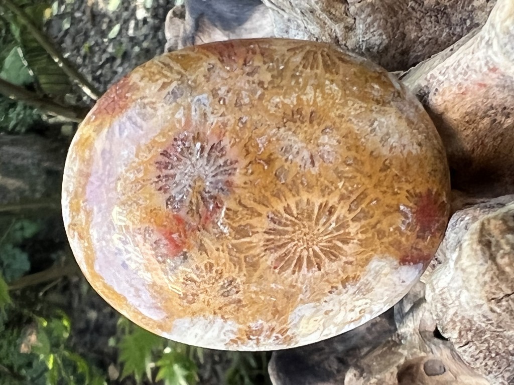 fossilised coral palmstone with rare red colour 118