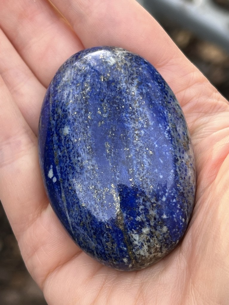Lapis Lazuli Deep Blue Crystal Palmstone : Serenity : Peace 94g 33