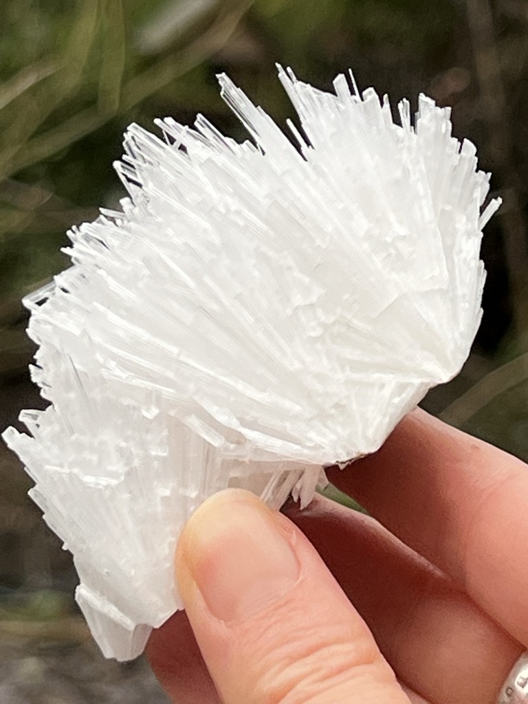 Scolecite Spray / Fan measuring 83:62:47mm weighing 94.2g NOTE - due to the extreme fragility of these items they have only been handled once to photograph. They will be packed with as much care as we can give. Even then there will be small shards that may have broken off during transportation. This is normal. It doesn’t constitute a broken item unless it’s got more damage. Scolecite is the stone of “inner peace”, and will be the perfect remedy for anyone looking to relax, especially after a long day. The crystal actives our upper chakras and is commonly used as a meditation tool. When holding a piece to the third eye, one will immediately feel slow, pulsating vibrations massage our 6th chakra. Scolecite strengthens and unlocks our third eye and allows for intense lucid dreaming. With it, extreme vividness and enhanced memory of your nightly inter-dimensional travels is very common. When meditating with the intention of auric cleansing or self-healing, it is important to do so from the heart. Scolecite may work on a higher vibration with the upper chakras, but it also unlocks the heart and pushes it to release anything that may be causing pain from within. This stone is a total auric cleanser and will in a sense do a “spring cleaning” on you when working with it daily. It’s important to cleanse and sage Scolecite after you’ve worked with it due to it pulling out negative energy from within and absorbing it. The Council recommends carrying Scolecite with you daily as a reminder to focus on yourself and to open up your hearts energies to those around you.