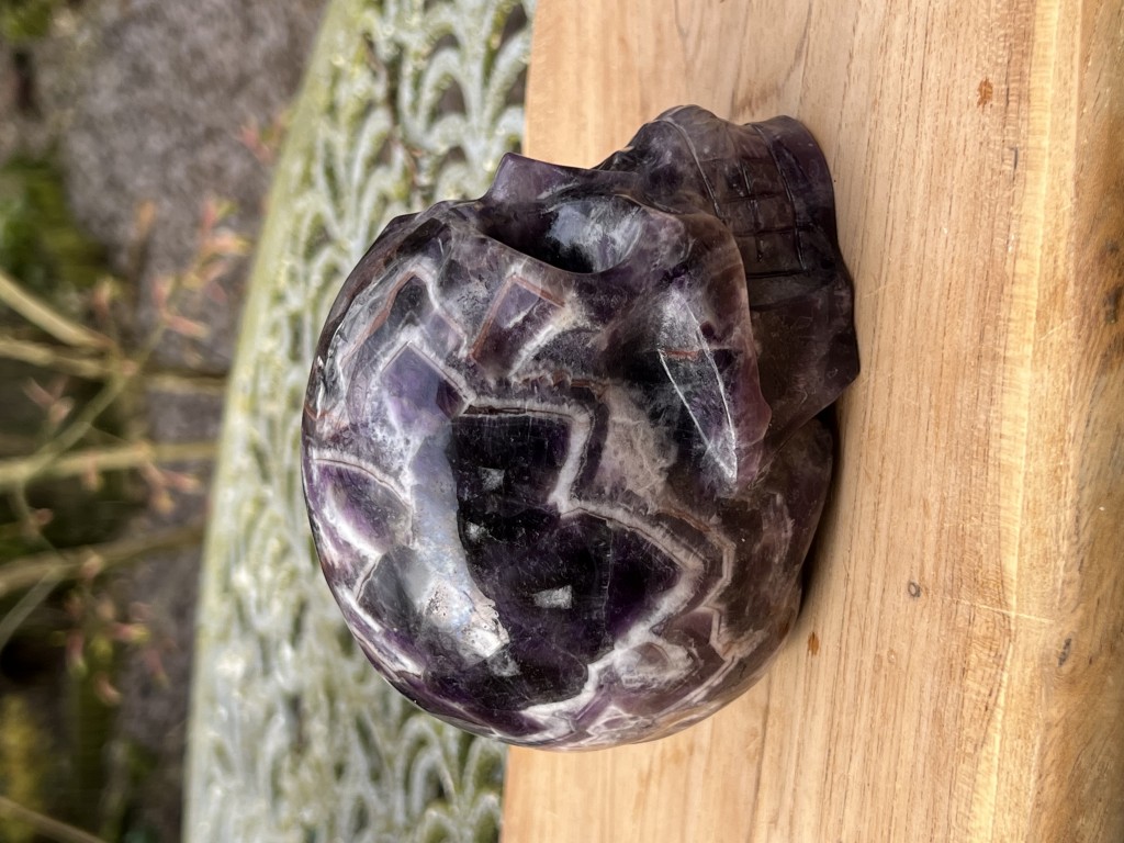 Chevron Amethyst Crystal Skull : Tranquility / Wisdom / Intuition 1134g