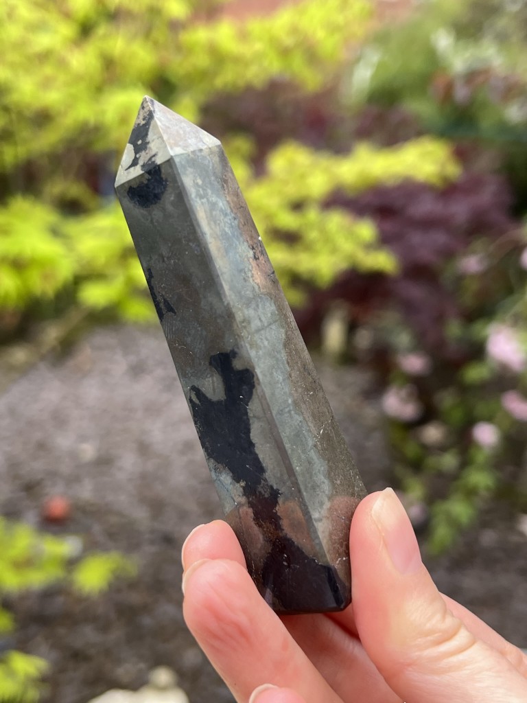 Healer’s Gold Tower / Point weighing 126g and measuring 96:21:21mm Love the heavy metallic feel and the solid energy contained in these. HEALERS GOLD IS A COMBINATION OF PYRITE AND MAGNETITE MINED IN ARIZONA, WHICH EMANATES A POWERFUL, POSITIVE ENERGY WHICH HAS BEEN USED BY THOSE WHO PRACTICE THE HEALING ARTS TO HELP THEM STAY ENERGIZED DURING HEALING SESSIONS AND PREVENT THEM FROM FEELING DRAINED OR EXHAUSTED. HEALER’S GOLD IS ALSO KNOWN AS APACHE GOLD, THE COLORS ARE GENERALLY GOLD AND SUB-METALLIC BLACK INTERTWINED WITH OCCASIONAL WHITE TRAILS. IT'S MADE UP OF ALMOST ENTIRELY IRON, WHICH CAUSES HEALER’S GOLD TO BE EXTREMELY HEAVY. HEALER’S GOLD IS A NEW AGE AMULET HERE TO PROVIDE MUCH-NEEDED MOTIVATION IN A WORLD FULL OF COMPLETE DISTRACTIONS. IF ONE IS NOT ABLE TO CONNECT WITH EARTH-BORN ENERGIES OR SIMPLY CREATE AND ACHIEVE INTERNAL DESIRES; THIS IS THE STONE FOR YOU. THE ENERGY YOU HAVE WITHIN YOURSELF IS COMPLETELY UNIQUE AND OFFERS ONE LIMITLESS POTENTIAL. HEALER’S GOLD NATURALLY ADVANCES ONE’S THOUGHT PROCESS TO APPRECIATE AND FINALLY ACCEPT THE INNER STRENGTH THAT YOU HOLD. AS ONE’S MENTAL CAPACITY BEGINS TO SEE THE PATH IN WHICH YOUR SOUL IS HEADING, ONLY THEN WILL YOU TRULY FIND YOURSELF. TRUST YOUR NATURAL INSTINCTS, REMIND YOURSELF OF WHERE YOU'VE BEEN, AND KNOW WHY EXACTLY YOU'RE ON THE JOURNEY YOU'RE ON. HEALER’S GOLD HELPS REMIND ONE OF THEIR OWN ABILITY TO INSPIRE THEMSELVES, WHICH IN RETURN WILL NATURALLY INFLUENCE OTHERS TO DO THE SAME. HEALER’S GOLD IS HERE TO HELP YOU BEGIN VISUALIZATION EXERCISES, WHERE ONE CAN MANIFEST AND CREATE THE FUTURE OF YOUR DREAMS. JUST AS PYRITE HELPS ONE UNDERSTAND THEIR OWN WANTS AND DESIRES, MAGNETITE NATURALLY HELPS ATTRACT THEM TO YOU (ONE MUST REMEMBER TO FOCUS AND STAY THE COURSE FOR NATURE TO WORK CORRECTLY). MAGNETITE IS THE MOST MAGNETIC MINERAL ON ALL OF PLANET EARTH, SO YOU CAN BET THE ENERGY THIS STONE OFFERS IS TRULY ONE OF A KIND. BOTH THESE MINERALS COMBINED NOT ONLY OPEN OUR LOWER THREE CHAKRAS, BUT ALSO BUILD A HARDENED CONNECTION AMONGST THEM. THIS IS HUGE FOR CARRYING OUT OUR EARTHLY DUTIES, AS OUR CONNECTION TO THIS PLANET WILL BE AT AN ALL TIME HIGH. HEALER’S GOLD IS FOUND IN ARIZONA