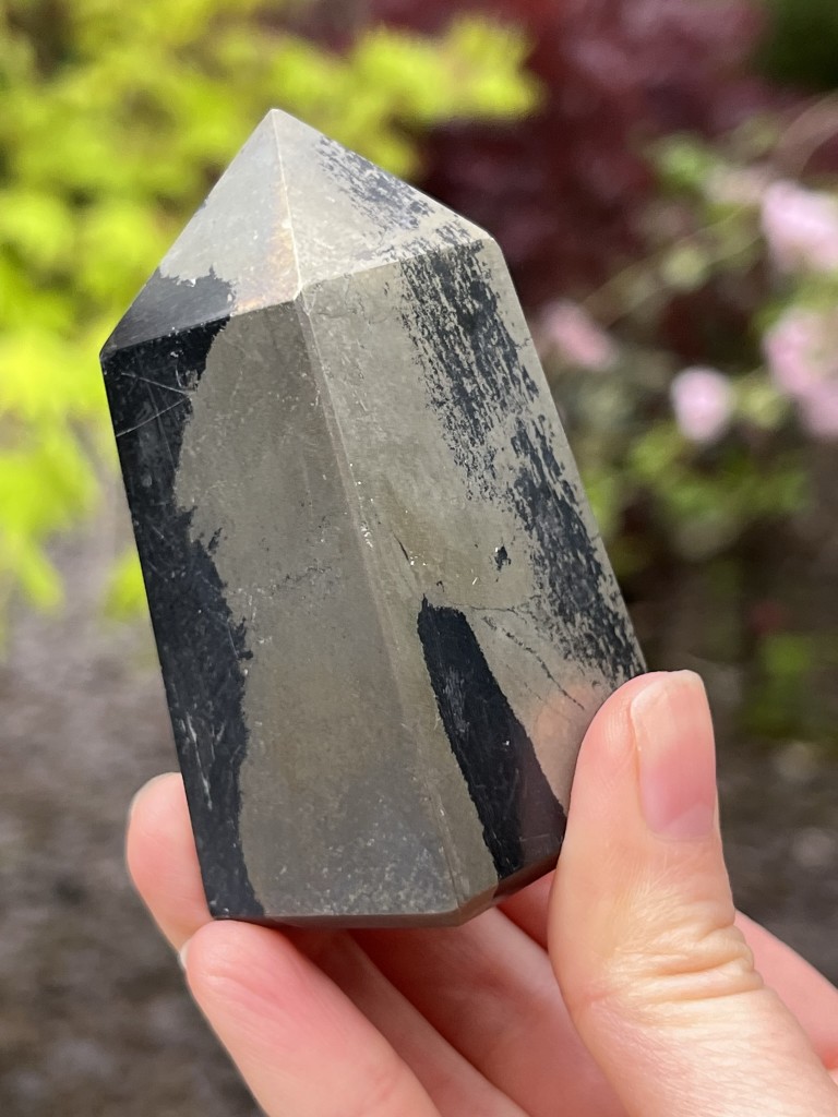 Healer’s Gold Tower / Point weighing 247g and measuring 74:35:36mm Love the heavy metallic feel and the solid energy contained in these. HEALERS GOLD IS A COMBINATION OF PYRITE AND MAGNETITE MINED IN ARIZONA, WHICH EMANATES A POWERFUL, POSITIVE ENERGY WHICH HAS BEEN USED BY THOSE WHO PRACTICE THE HEALING ARTS TO HELP THEM STAY ENERGIZED DURING HEALING SESSIONS AND PREVENT THEM FROM FEELING DRAINED OR EXHAUSTED. HEALER’S GOLD IS ALSO KNOWN AS APACHE GOLD, THE COLORS ARE GENERALLY GOLD AND SUB-METALLIC BLACK INTERTWINED WITH OCCASIONAL WHITE TRAILS. IT'S MADE UP OF ALMOST ENTIRELY IRON, WHICH CAUSES HEALER’S GOLD TO BE EXTREMELY HEAVY. HEALER’S GOLD IS A NEW AGE AMULET HERE TO PROVIDE MUCH-NEEDED MOTIVATION IN A WORLD FULL OF COMPLETE DISTRACTIONS. IF ONE IS NOT ABLE TO CONNECT WITH EARTH-BORN ENERGIES OR SIMPLY CREATE AND ACHIEVE INTERNAL DESIRES; THIS IS THE STONE FOR YOU. THE ENERGY YOU HAVE WITHIN YOURSELF IS COMPLETELY UNIQUE AND OFFERS ONE LIMITLESS POTENTIAL. HEALER’S GOLD NATURALLY ADVANCES ONE’S THOUGHT PROCESS TO APPRECIATE AND FINALLY ACCEPT THE INNER STRENGTH THAT YOU HOLD. AS ONE’S MENTAL CAPACITY BEGINS TO SEE THE PATH IN WHICH YOUR SOUL IS HEADING, ONLY THEN WILL YOU TRULY FIND YOURSELF. TRUST YOUR NATURAL INSTINCTS, REMIND YOURSELF OF WHERE YOU'VE BEEN, AND KNOW WHY EXACTLY YOU'RE ON THE JOURNEY YOU'RE ON. HEALER’S GOLD HELPS REMIND ONE OF THEIR OWN ABILITY TO INSPIRE THEMSELVES, WHICH IN RETURN WILL NATURALLY INFLUENCE OTHERS TO DO THE SAME. HEALER’S GOLD IS HERE TO HELP YOU BEGIN VISUALIZATION EXERCISES, WHERE ONE CAN MANIFEST AND CREATE THE FUTURE OF YOUR DREAMS. JUST AS PYRITE HELPS ONE UNDERSTAND THEIR OWN WANTS AND DESIRES, MAGNETITE NATURALLY HELPS ATTRACT THEM TO YOU (ONE MUST REMEMBER TO FOCUS AND STAY THE COURSE FOR NATURE TO WORK CORRECTLY). MAGNETITE IS THE MOST MAGNETIC MINERAL ON ALL OF PLANET EARTH, SO YOU CAN BET THE ENERGY THIS STONE OFFERS IS TRULY ONE OF A KIND. BOTH THESE MINERALS COMBINED NOT ONLY OPEN OUR LOWER THREE CHAKRAS, BUT ALSO BUILD A HARDENED CONNECTION AMONGST THEM. THIS IS HUGE FOR CARRYING OUT OUR EARTHLY DUTIES, AS OUR CONNECTION TO THIS PLANET WILL BE AT AN ALL TIME HIGH. HEALER’S GOLD IS FOUND IN ARIZONA