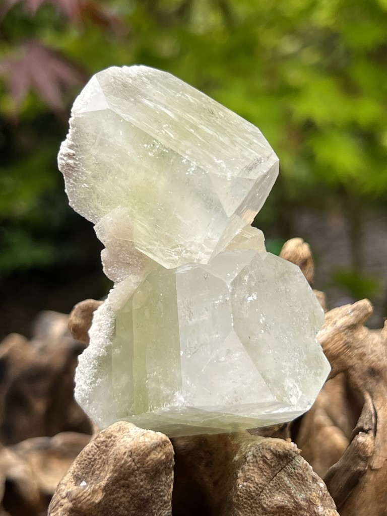 Large Green Cubic Apophyllite Rare Cluster With Stillbite beautiful, gemmy and rare. Multi pointed pyramid points. Large cubic Apophyllite, highest quality, very rare to get hold of this much Green Apophyllite in a cluster. With green Apophyllite, the greener and the brighter, the more valuable. Direct from India. Weighing 114g and measuring 85:50:49mm These Green Apophyllite Clusters w/Stilbite are naturally formed pyramid shapes that grow from a common base and emit energy in all directions. The metaphysical combination of both crystals makes it great for grids, energy work and meditation. The Green Apophyllite crystals are pale to medium green in color while the Stilbite has a peachy color. Shortly, Green Apophyllite cleanses and balances the Heart Chakra energy. It can bring clarity to decisions and situations of the heart by allowing the holder to see all sides of the issue, untainted by fear or ego. It can assist with "letting go" of issues that no longer serve and allow forgiveness and healing to begin. Green Apophyllite can also be used to connect with the energies of Mother Earth and nature, making it perfect for working with Earth healing. Also, it opens a psychic channel, which can be used for communications with plant, animal, fairy and elemental energy. Stilbite exhibits a wonderful spiritual energy and is often used for psychic guidance and creativity. Carrying a fine, loving vibration, Stilbite can help with all kinds of metaphysical endeavors, and especially with spiritual travel. It is known that people often lose all or some of their memories of spiritual or other metaphysical experiences due to the fact that, to facilitate such experiences, usually a deeper meditative state, such as beta or theta, is necessary. Stilbite is believed to aid in remembering those experiences.