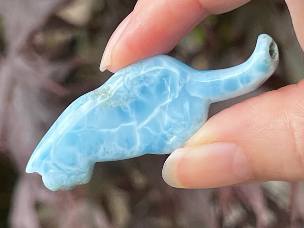 Large Larimar Beautiful cat carving weighing 13g and measuring 54:19:9mm. This piece is direct from the miner in the Dominican Republic. Beautiful blues to this beautiful handcarved turtle. Healing Stone for the Throat Chakra : Love : Peace : Tranquility Larimar a Stone that’s is like looking into the ocean on a calm day, radiates love, peace and tranquility. It effortlessly helps us with a meditative state, it raises our consciousness and harmonises the body. Larimar facilitates angelic contact and communication with other realms, it’s an excellent Stone for those seeking a soulmate. It removes self imposed blocks and assists us in taking control of our lives. It brings serenity and removes guilt and fear, it encourages us to go with the flow. Larimar connects to the energy of the earth goddess Gaia.