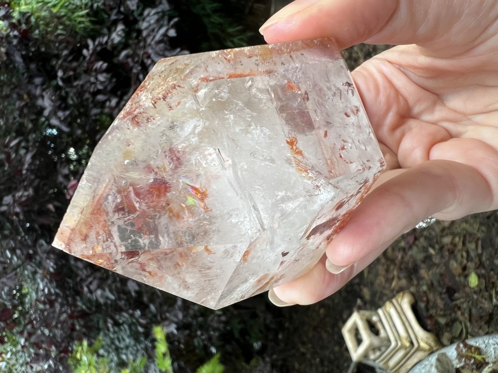 Dreamcoat Lemurian Clear Quartz Crystal weighing 231g and measuring 63:62:44mm Dreamcoat Lemurian crystals are found close to the Cristalina Lemurian mine in Brazil. These deep "reds" are from deeper in the pocket and even have that older energy to them. Dreamcoat Lemurians specifically: The distinct difference between the Dreamcoat Lemurians and any other crystal in the pocket is that the Dreamcoat Lemurians are similar to an onion analogy. These crystals will work with you to peel back the layers on whatever is energetically standing in your way, and patiently wait to work with you. Like all crystals from this pocket, they will aid you in manifestation. These red dreamcoats, in my opinion, have a Kundalini energy connection. When you connect with it you will feel a deep "love", soon followed by an energy "rising". The term kundalini is used to refer to the vital force or energy that we all hold within us. Often called the “sleeping goddess” or “serpent power”, it is represented as a serpent coiled around the first chakra or root chakra at the base of the spine. Imagine the chakra system as existing on a single electrical circuit that runs lengthwise up the spine with lights at the location of each of the chakras. As Kundalini rises and travels up the spinal column, it passes through each of the chakras on its way giving each a boost, so to speak, and making it light up. Lemurian Seed Crystal, also known as Lemurian Quartz, is a form of Quartz that is found in a specific locality of Brazil. The Lemurian crystals are extremely delicate in their formation and its unique property helped shape its name. When a Lemurian crystal is growing within a cluster, it can be so fragile that it will naturally fall out onto the floor of the crystal cave. When ancient communities encountered these caves and discovered the crystals waiting for them on the ground, they felt as though they were seeds of knowledge planted for the taking. Lemurian Quartz is similar to normal Quartz except that it contains much more historic energy. Embedded in Lemurian Quartz is usually a horizontal line of fragments which are commonly referred to as “memories”. The information within each point contains powerful energies. This energy is capable of producing intelligent life to provide us with a much-needed soulful mission. These beings became very spiritual, and were more in touch with their higher selves. This connection led to their race being very intelligent, excelling in technology, ideology, and emotions. It is theorized that they were wiped out by a great flood that occurred around 12,000 years ago. It is our belief that these crystals were left here for the purpose of reigniting humanity's connection with the universe. Lemurian Quartz reminds us that we are our own gods and can produce whatever it is we may set our mind, heart, and soul to. Much of what we are seeking is already within us. The Lemurians were well aware that the only way forward in life is through the individual growth of one's spirit. To quote the Theosophical Society that Helena Plavatsky helped found: “il n'y a pas de religion supérieure à la vérité” which translates to “there is no religion greater than the truth”.