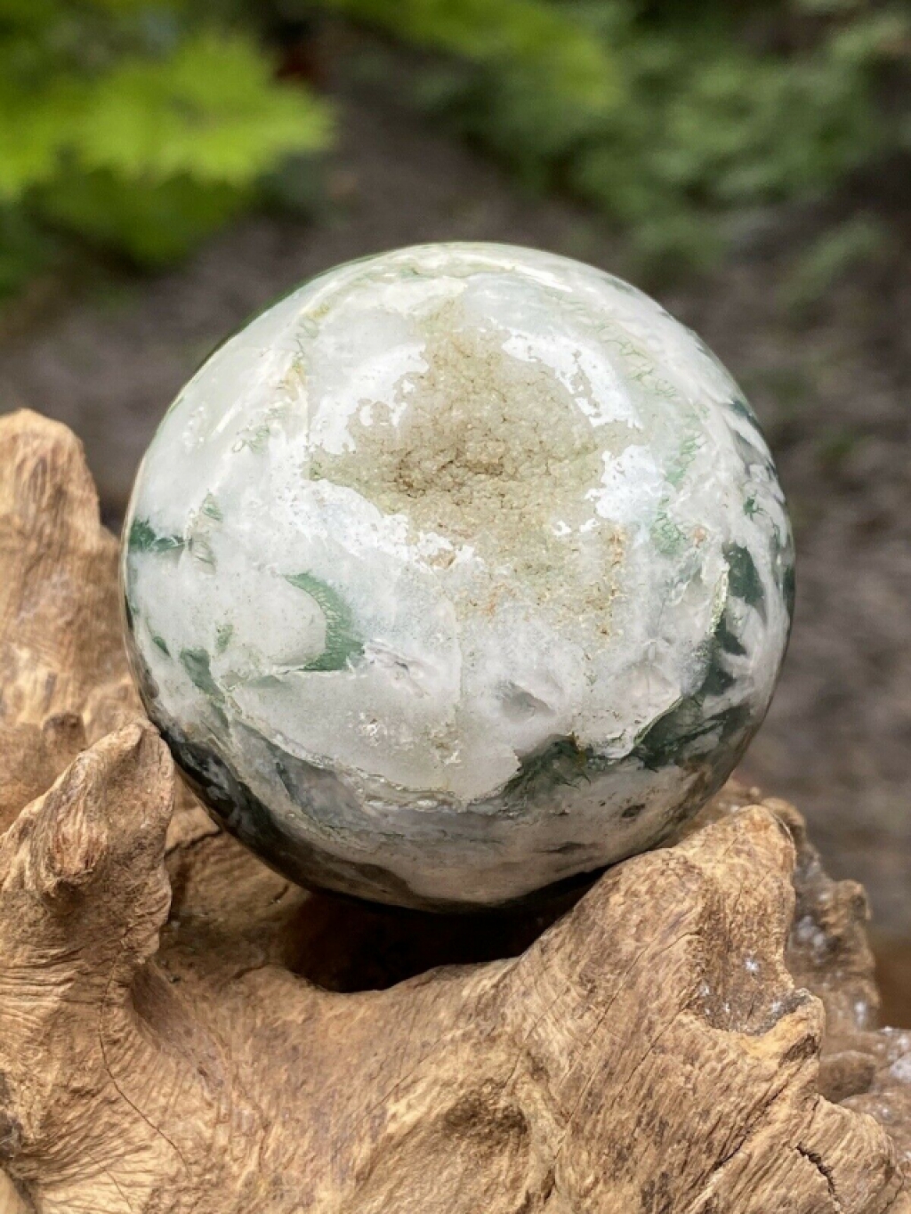 Moss Agate Crystal Ball AAA+ Abundance / Optimism / Strengthening 165g 50mm 4