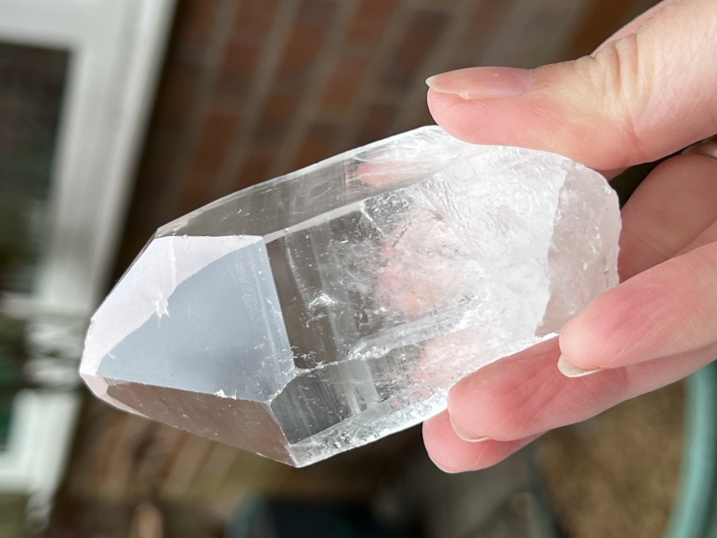 Large Lemurian Clear Quartz Crystal weighing 171g and measuring 89:37:38mm Lovely distinct striations to this point, gorgeous patterning inside. Deep striations. Lemurian Seed Crystal, also known as Lemurian Quartz, is a form of Quartz that is found in a specific locality of Brazil. The Lemurian crystals are extremely delicate in their formation and its unique property helped shape its name. When a Lemurian crystal is growing within a cluster, it can be so fragile that it will naturally fall out onto the floor of the crystal cave. When ancient communities encountered these caves and discovered the crystals waiting for them on the ground, they felt as though they were seeds of knowledge planted for the taking. Lemurian Quartz is similar to normal Quartz except that it contains much more historic energy. Embedded in Lemurian Quartz is usually a horizontal line of fragments which are commonly referred to as “memories”. The information within each point contains powerful energies. This energy is capable of producing intelligent life to provide us with a much-needed soulful mission. These beings became very spiritual, and were more in touch with their higher selves. This connection led to their race being very intelligent, excelling in technology, ideology, and emotions. It is theorized that they were wiped out by a great flood that occurred around 12,000 years ago. It is our belief that these crystals were left here for the purpose of reigniting humanity's connection with the universe. Lemurian Quartz reminds us that we are our own gods and can produce whatever it is we may set our mind, heart, and soul to. Much of what we are seeking is already within us. The Lemurians were well aware that the only way forward in life is through the individual growth of one's spirit. To quote the Theosophical Society that Helena Plavatsky helped found: “il n'y a pas de religion supérieure à la vérité” which translates to “there is no religion greater than the truth”.