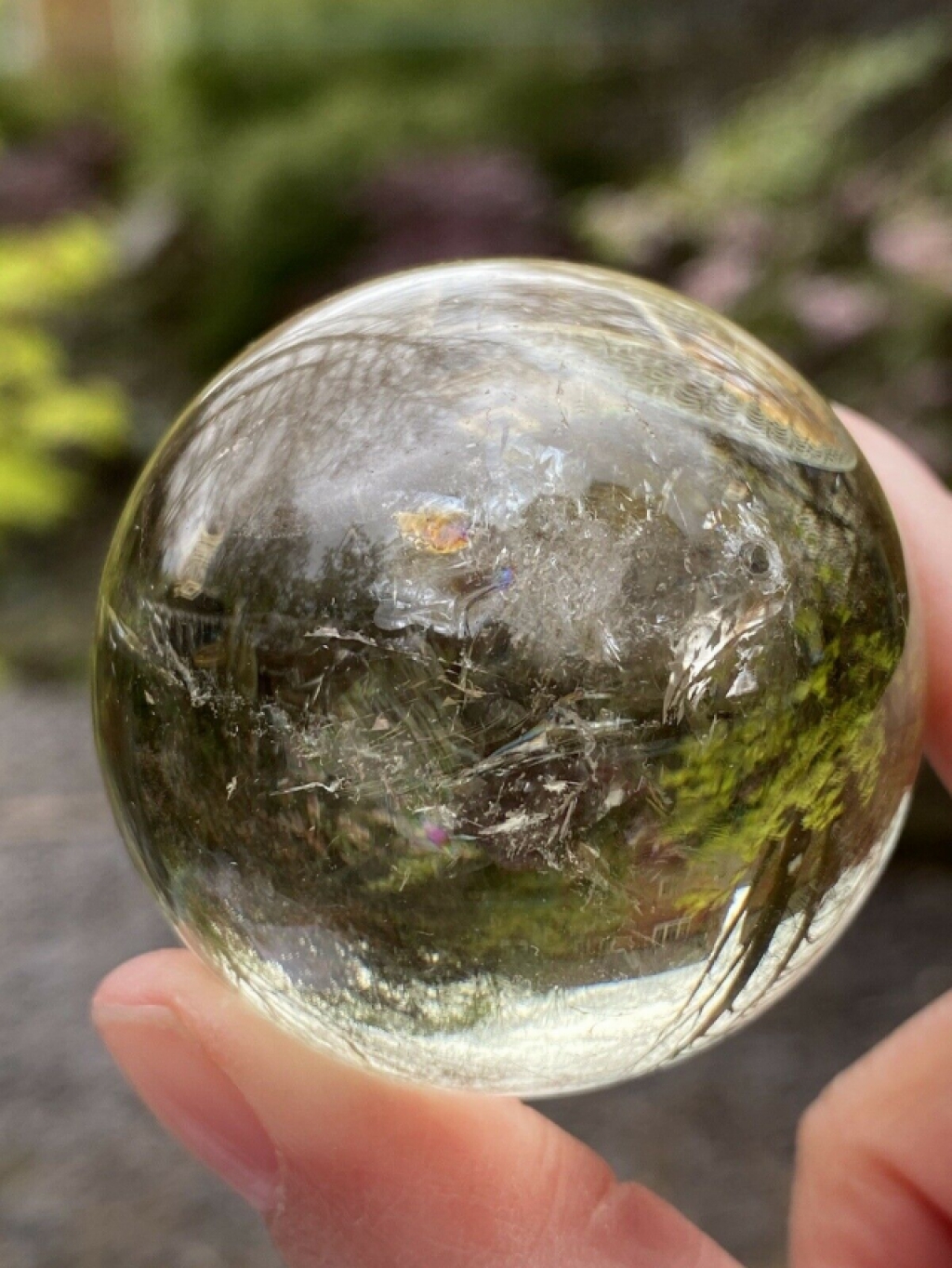 A beautiful high grade natural Brazilian citrine ball with beautiful rainbows weighing 133g and measuring 44.9mm diameter.