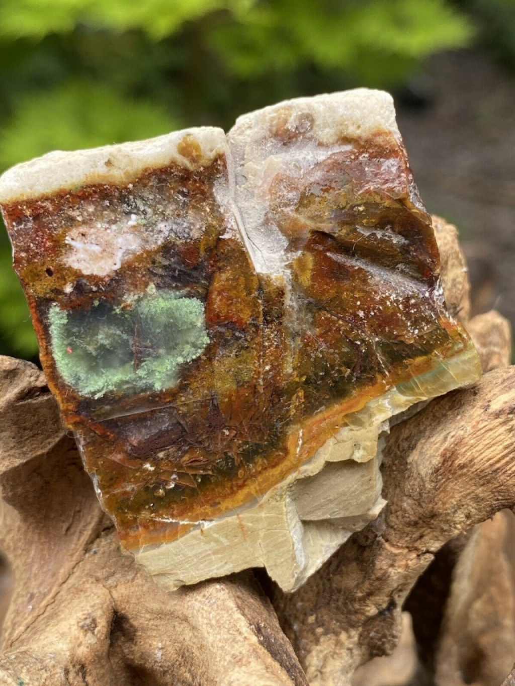Rare Petrified Wood Indonesian Blue Opalised & Native Copper Slice 34g 3 AAA+