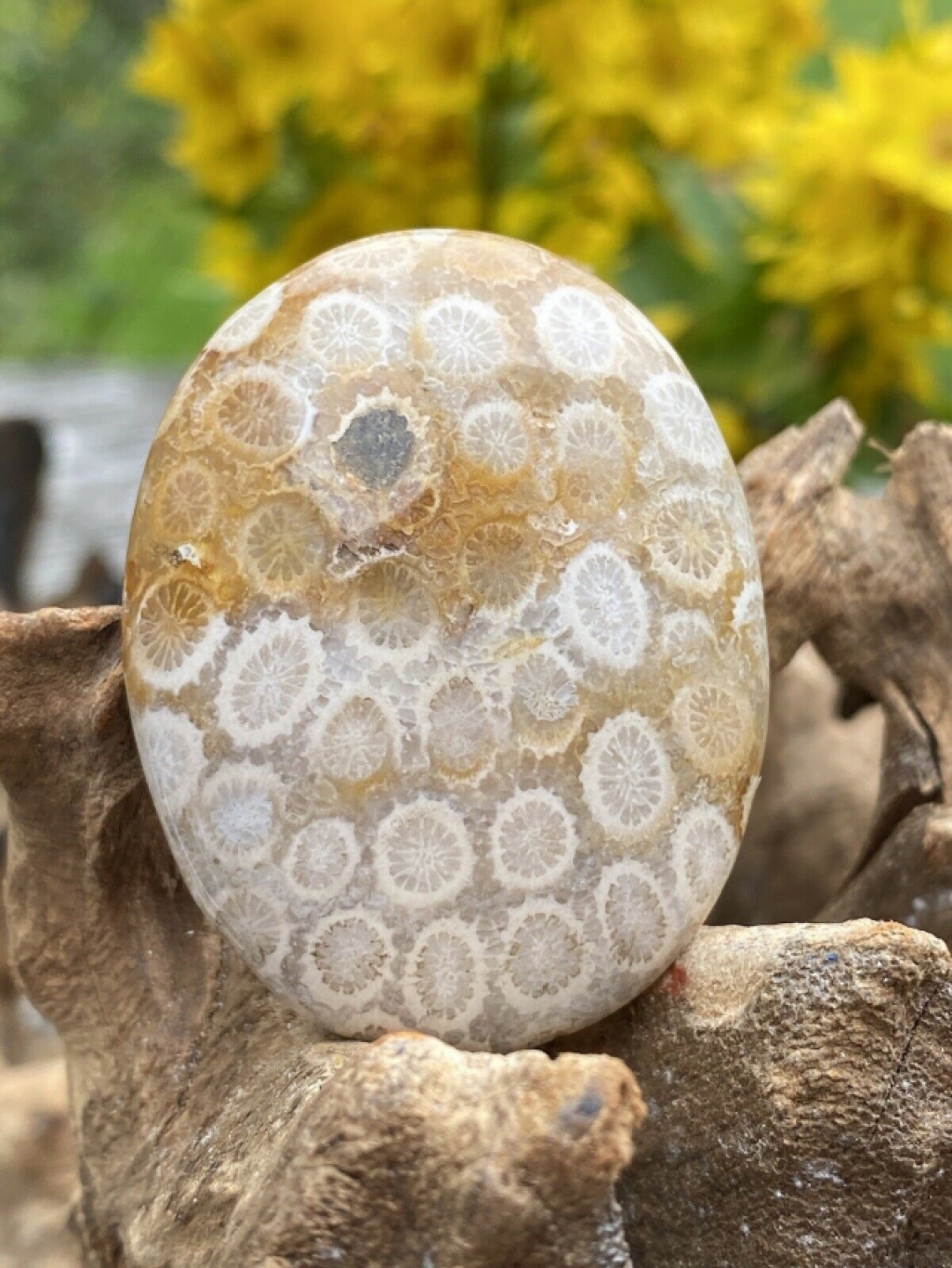 Fossilised Coral tumblestones. Beautiful details that I hope I?ve done justice do with my photos. I find these pieces fascinating. Weighing 44g and measuring 50:40:17mm