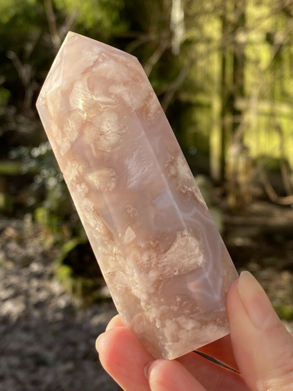Flower Agate / Cherry Blossom / Plum Blossom Agate Crystal Tower Point 148g 8