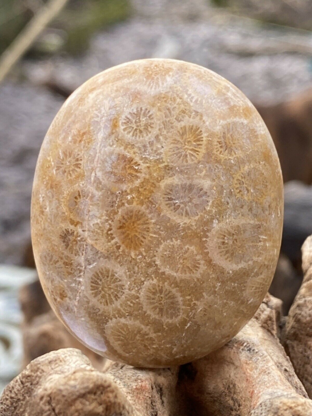 Fossilised Coral tumblestones. Beautiful details that I hope I?ve done justice do with my photos. I find these pieces fascinating. Weighing Approx 44g and measuring 50:40:17mm