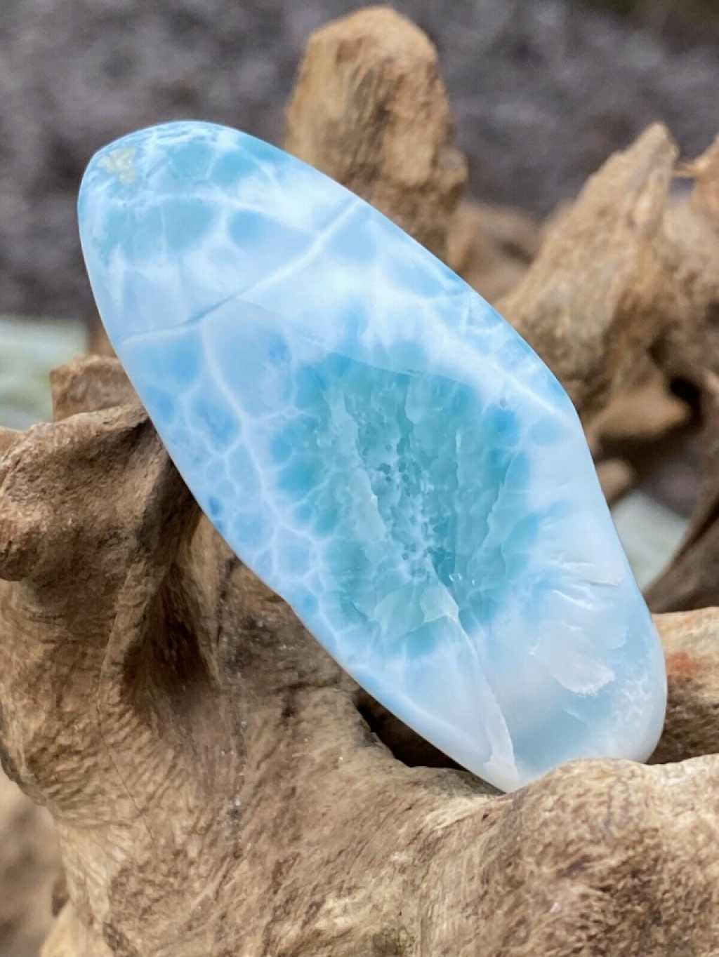 Large Larimar Beautiful Freeform weighing 27.7g and measuring 54:24:26mm . This piece is direct from the miner in the Dominican Republic. Deep blues to these pieces. I love the ocean like colours and depth to larimar, this one has the prettiest patterns.