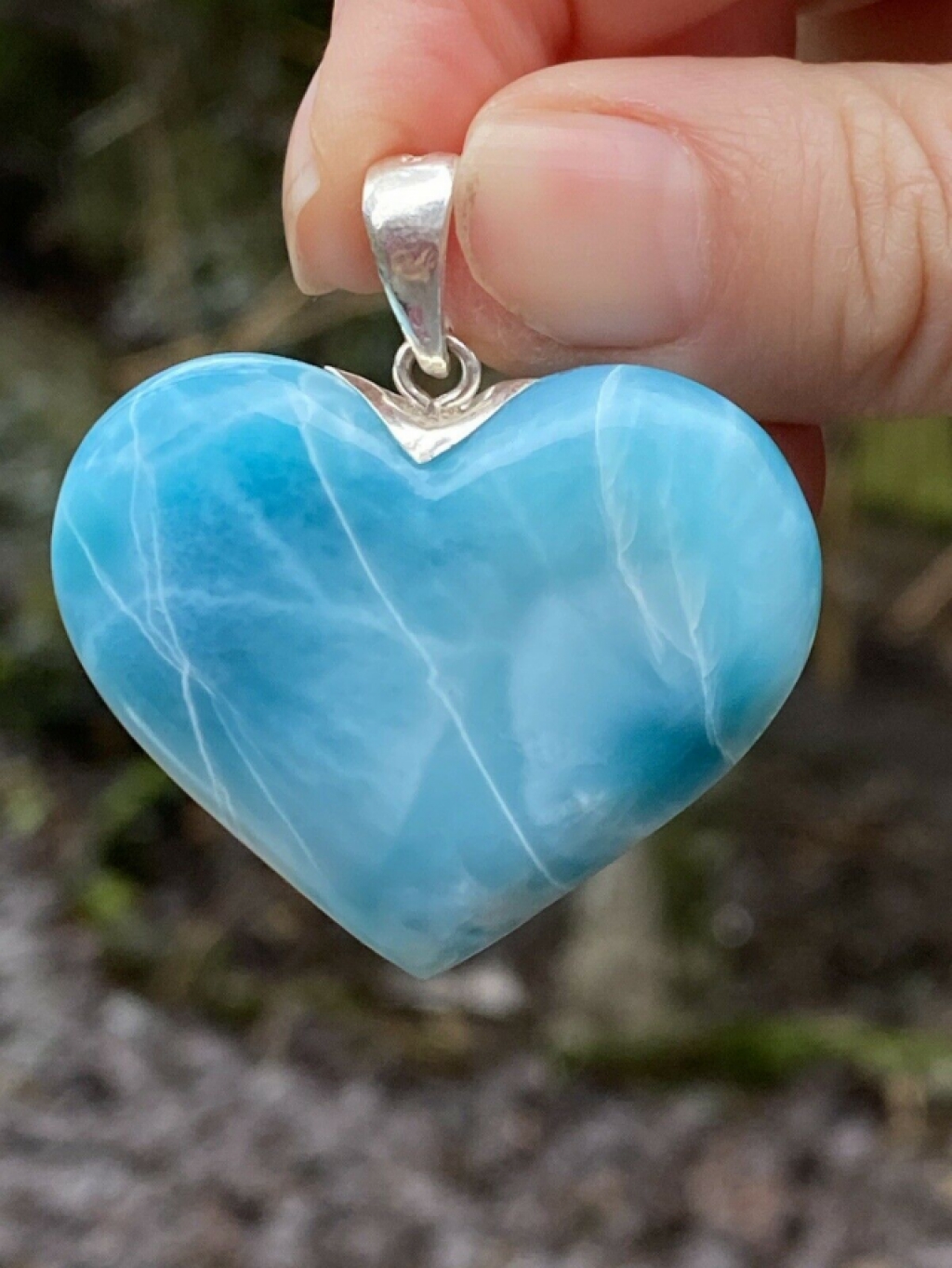 Larimar Heart Pendant Deep Blue 925 Silver AAA+ : Peace: Love : Tranquility 2
